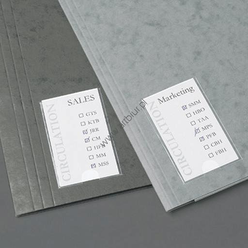 Wymienne, papierowe etykiety do ręcznego opisywania, możliwość przyklejenia kieszeni w dowolnym miejscu.