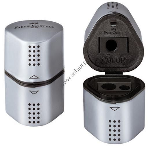 Nowoczesna temperówka serii Grip 2001 srebrna, posiada trzy ostrza: do różnych przekrojów ołówka, kredek ołówkowych oraz 2 pojemniki na wiórki. jednostka sprzedaży: 1 sztuka